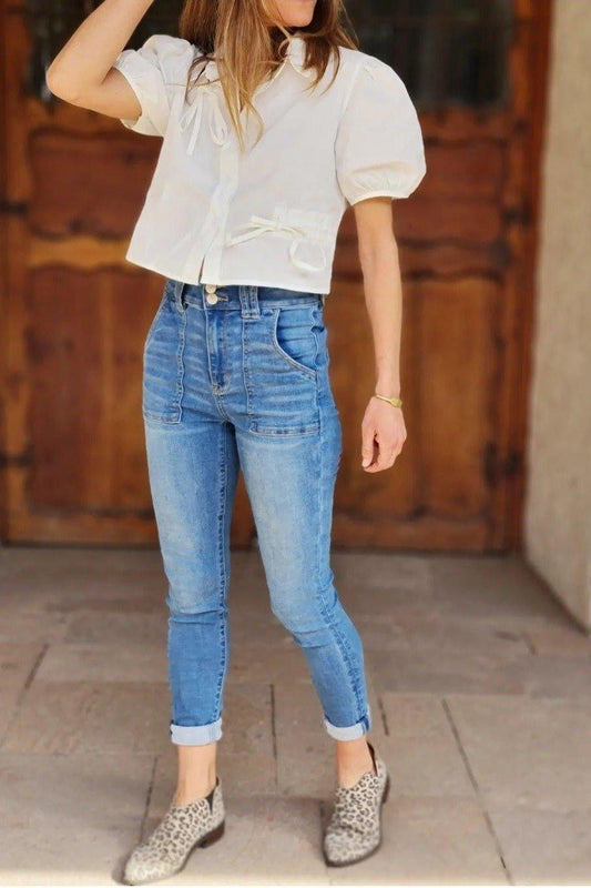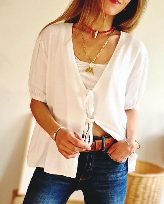 BLUSA LAZOS BLANCA -60% DE DCTO.