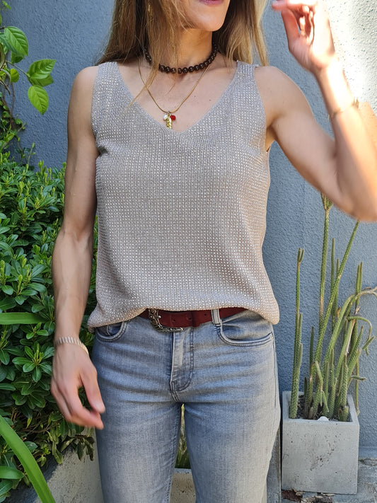 POLERA HILO BRILLO GRIS-15%DCTO.
