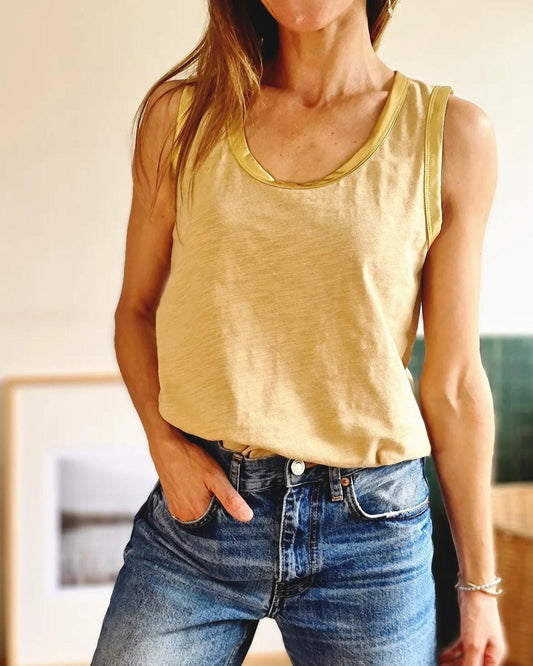 POLERA RAMONA BEIGE/DORADO -60% DE DCTO.