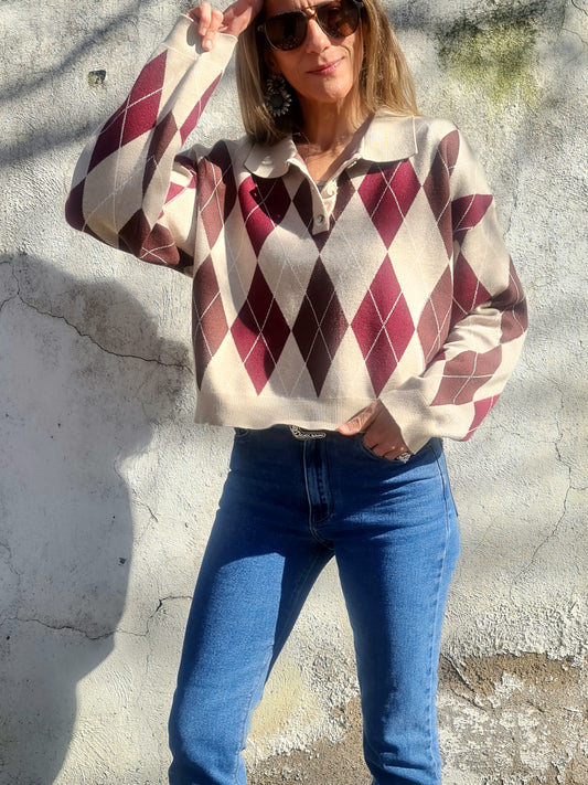 SWEATER ROMBO BEIGE -60% Dcto.