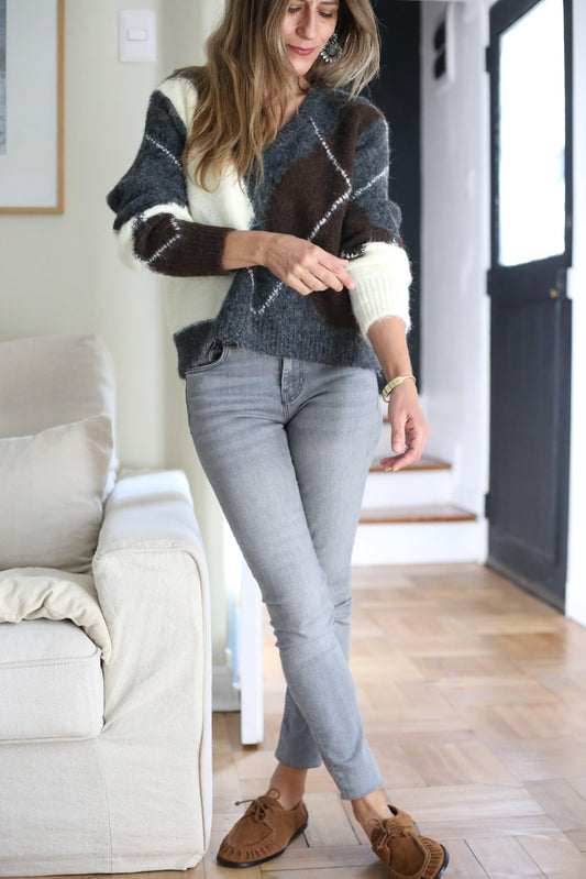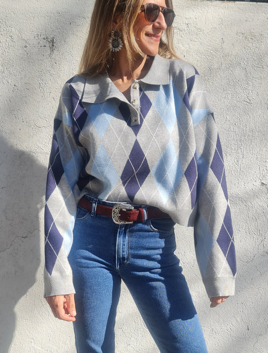 SWEATER ROMBO GRIS -60% DCTO..