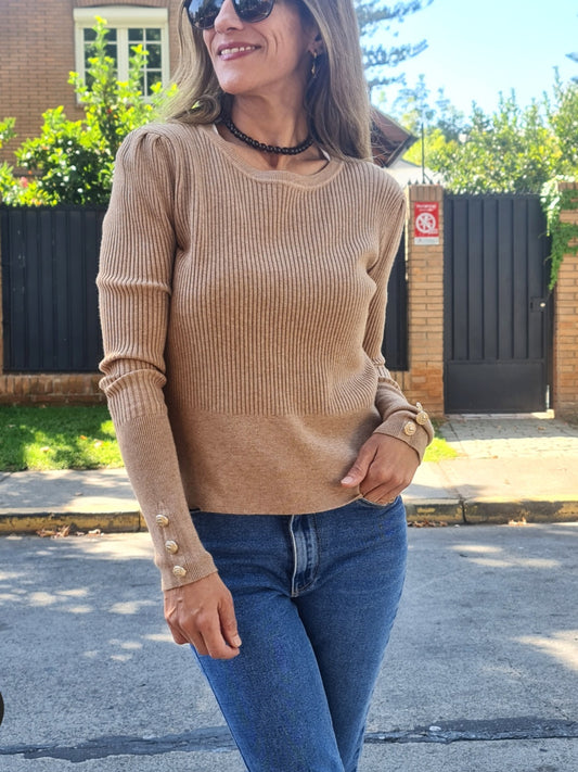 SWEATER BOTON CAMEL -40% DE DCTO.