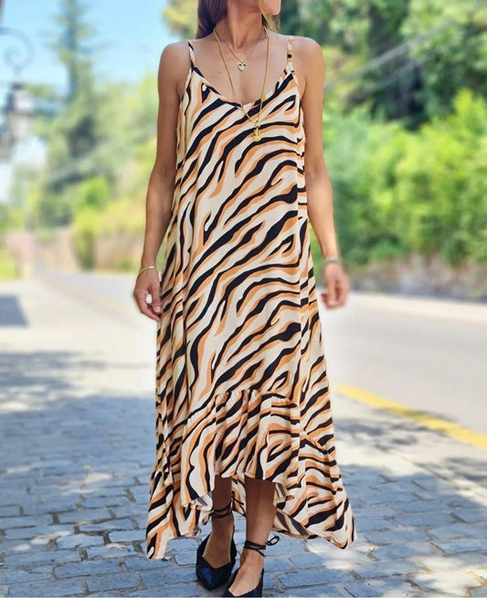 VESTIDO PRINT BEIGE -70% DE DCTO.
