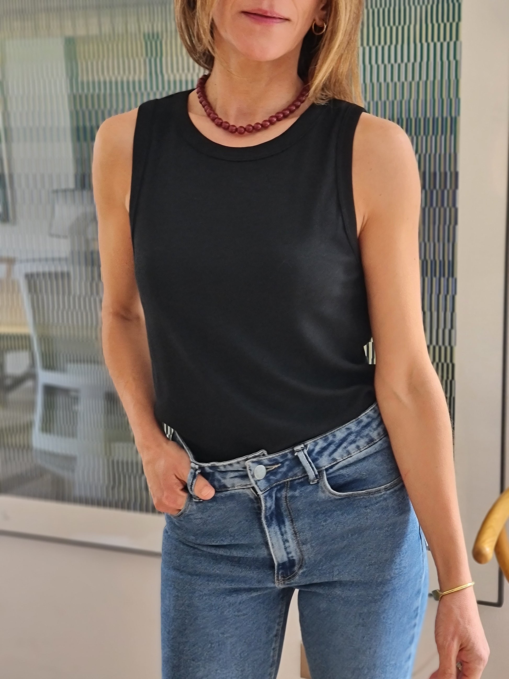 Polera Leticia Negra de Algodon elasticado, suave y muy rica calidad. Corte recto.