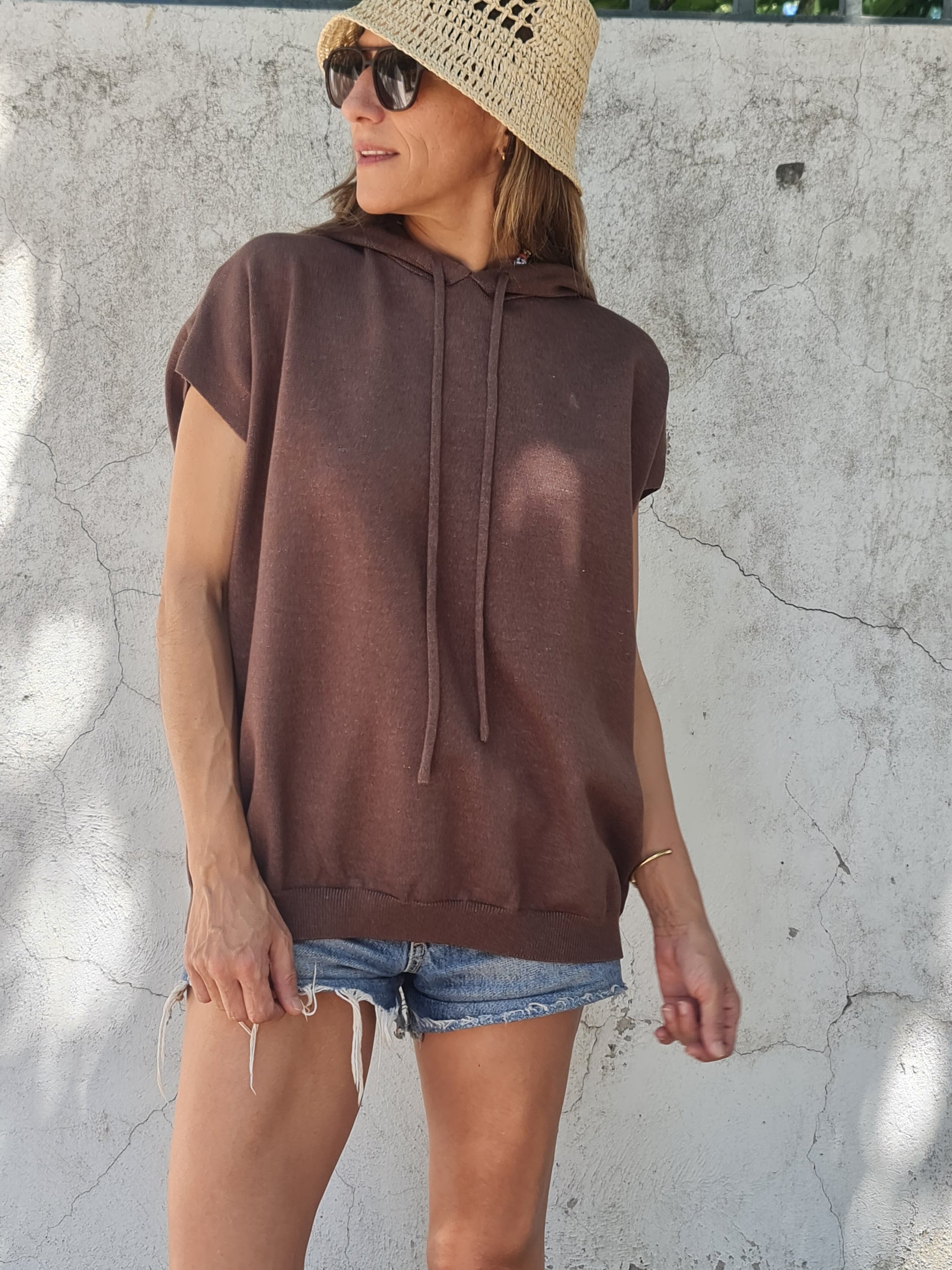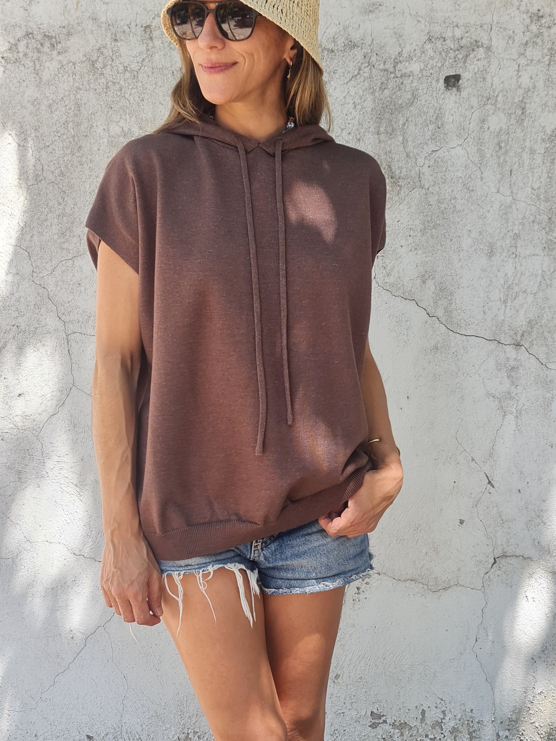 Poleron de tejido muy suave y grosor exquisito. Corte recto, tejido flexible, muy comodo. Bolsillo delantero, capucha.