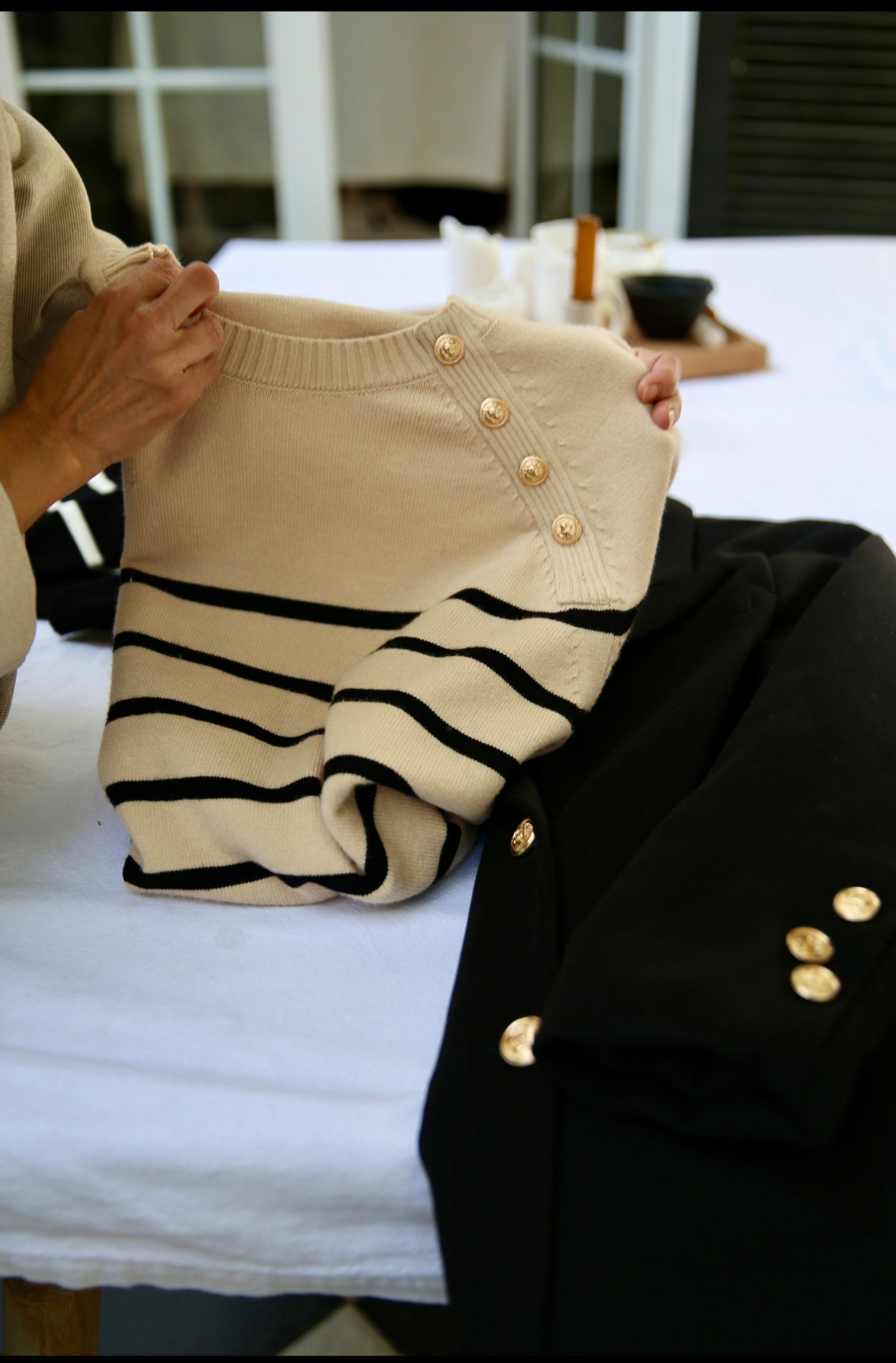 Sweater Frances de tejido suave, grosor intermedio muy rico. Corte recto, cuello polo. Detalle de botones marineros dorados. Clasico, femenino y con un muy buen largo.